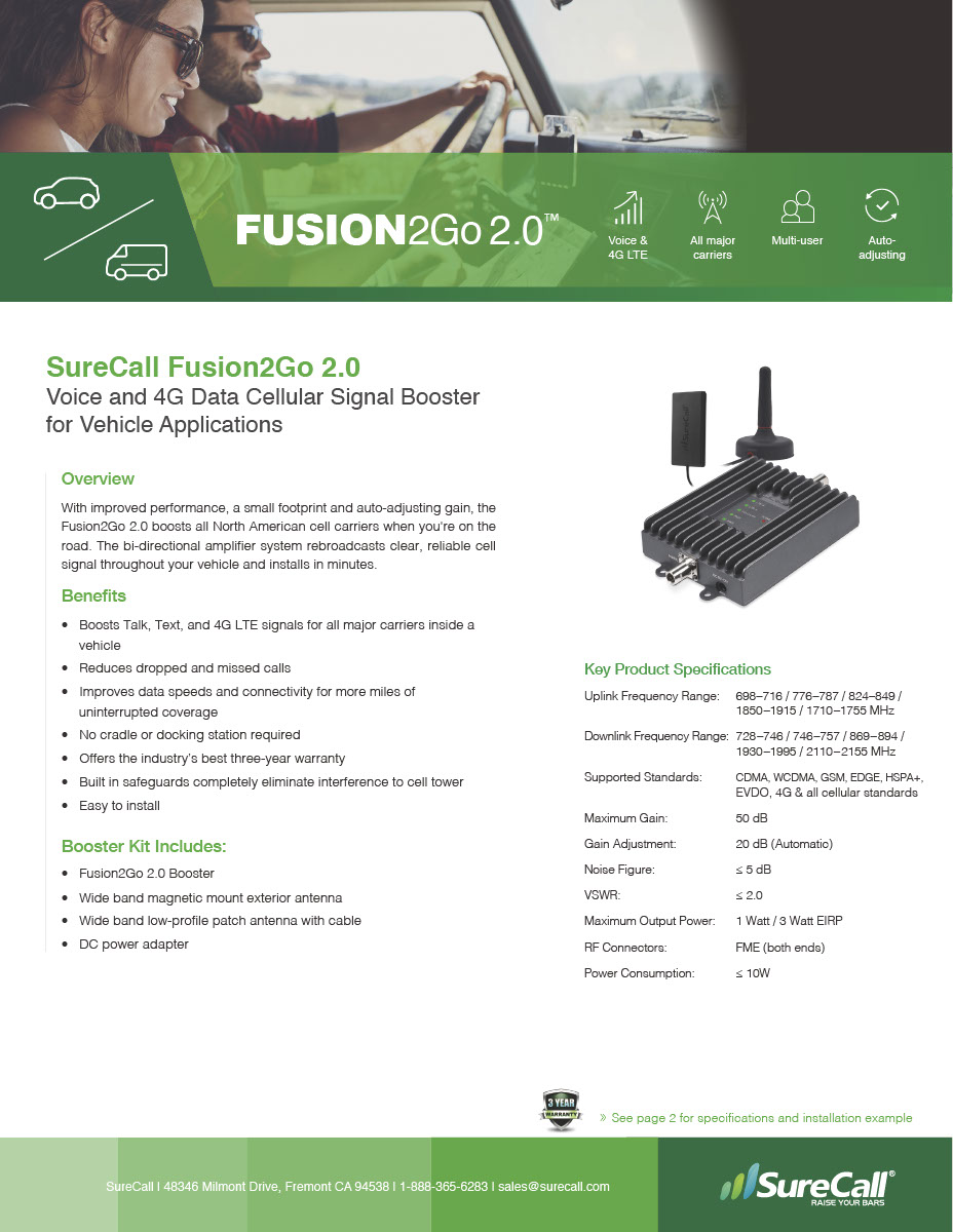 SureCall Fusion2Go 2.0 Cell Phone Signal Booster
